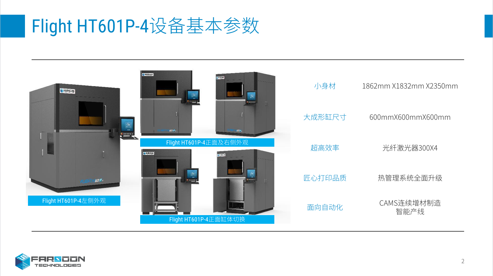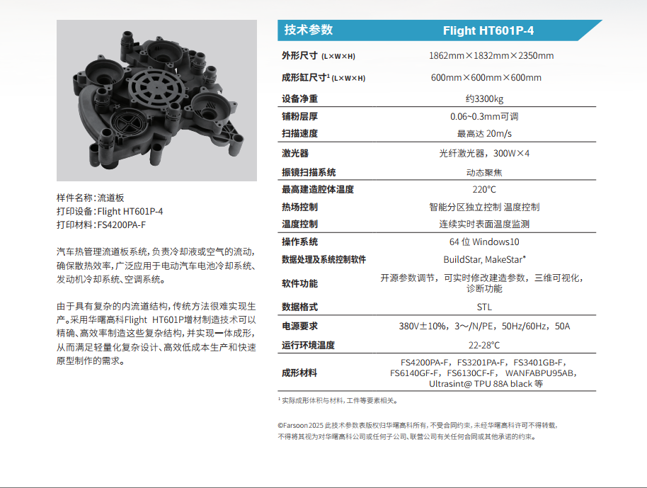 配备光纤激光烧结Flight技术,4激光配置,成型缸尺寸600*600*600mm