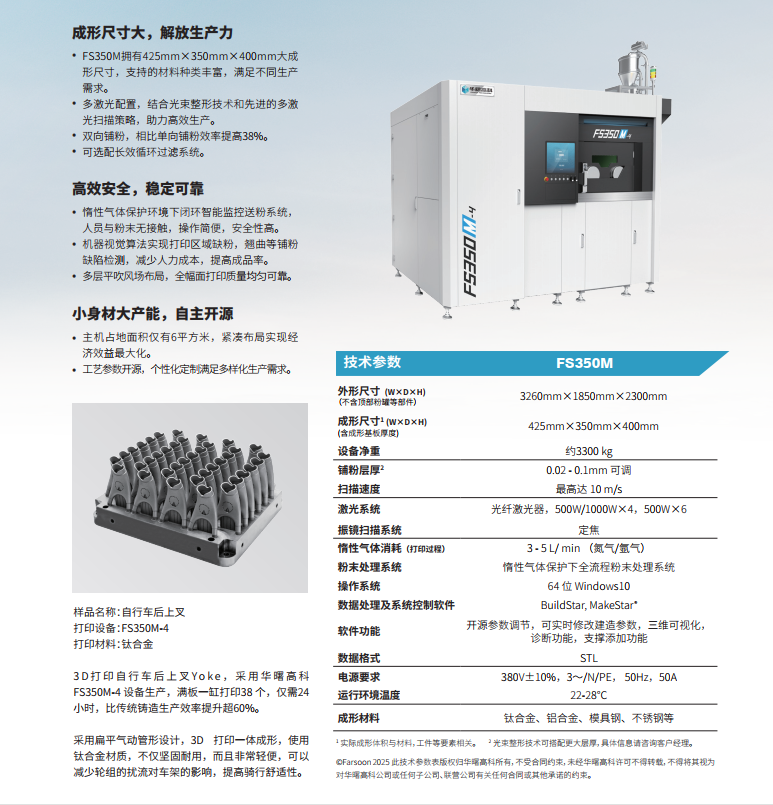 拥有425mm×350mm×400mm大成形尺寸,支持的材料种类丰富,满足不同生产需求。
