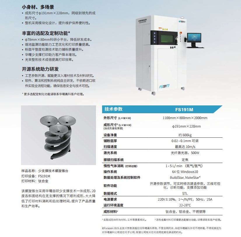 成型尺寸φ191*220mm,同级别领先的成型尺寸。整机采用模块化设计,提升维护保养便利性。